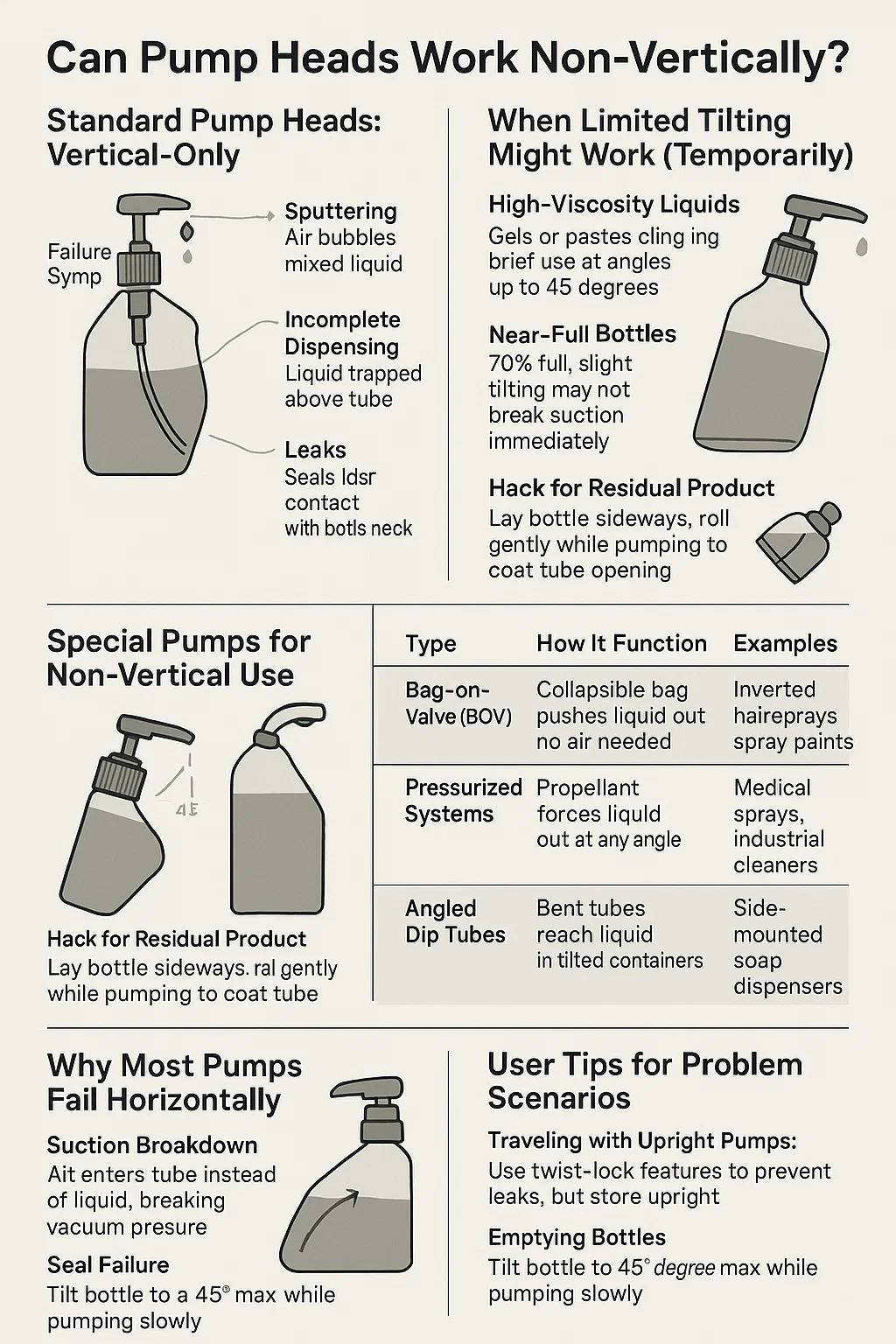 Reka bentuk yang bergantung kepada graviti: Design Dipependent: Tiub Dip memerlukan cecair ke kolam di bawah botol. Sedikit mengganggu sedutan, menyebabkan pengambilan udara atau mengepam kering.