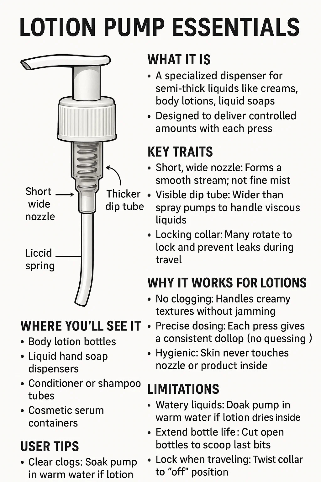 Dispenser khusus untuk cecair separuh tebal seperti krim, losyen badan, sabun cecair.