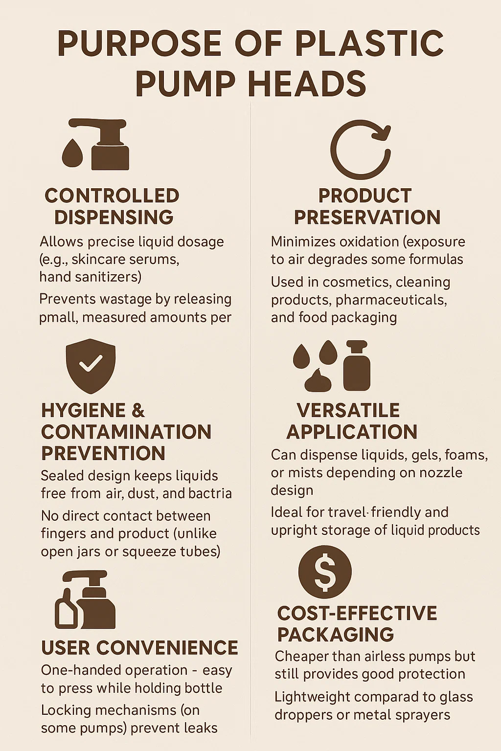 Membolehkan dos cecair yang tepat (mis., Serum penjagaan kulit, sanitizer tangan).
